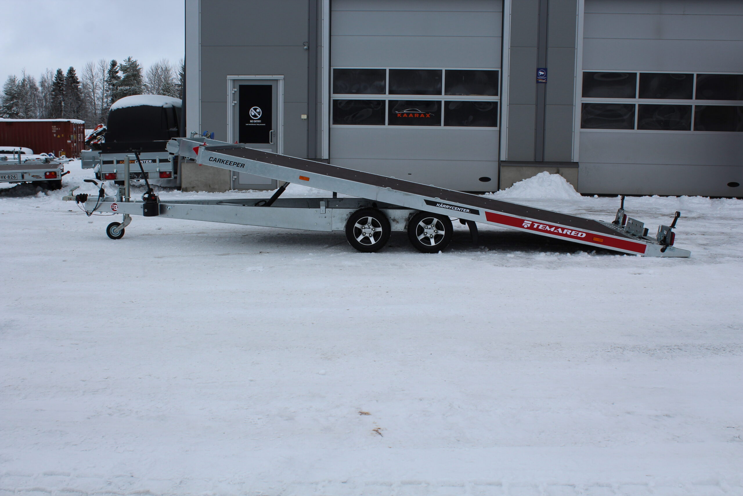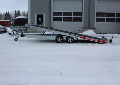 Tämä autonkuljetusperävaunu tarjoaa luotettavuutta ja helppoutta vaativaan käyttöön. Kallistettava lastausalusta ja erittäin loiva 6 asteen nousukulma tekevät lastauksesta sujuvaa myös matalaprofiilisille ajoneuvoille. Ajosillat on kätevästi sijoitettu kuljetuspinnan alle poissa tieltä, mutta aina valmiina käyttöön.