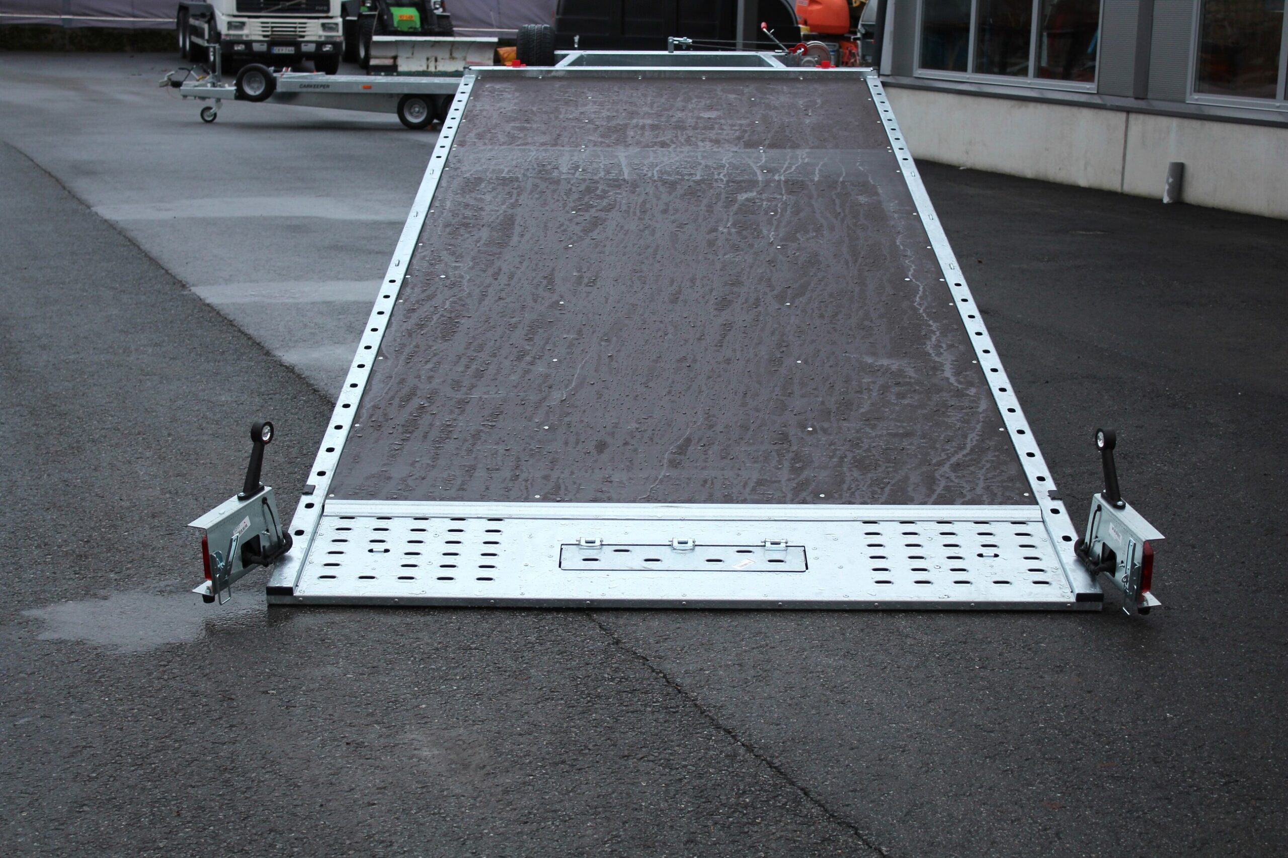 Vankka, suljetuista profiileista valmistettu runko sekä vahvistettu alusta ja vetoaisa takaavat erinomaisen kestävyyden ja turvallisuuden. Sivupalkkien reiät sijoitettuine kiinnitysreikineen helpottavat kuljetettavien ajoneuvojen varmaa kiinnittämistä.