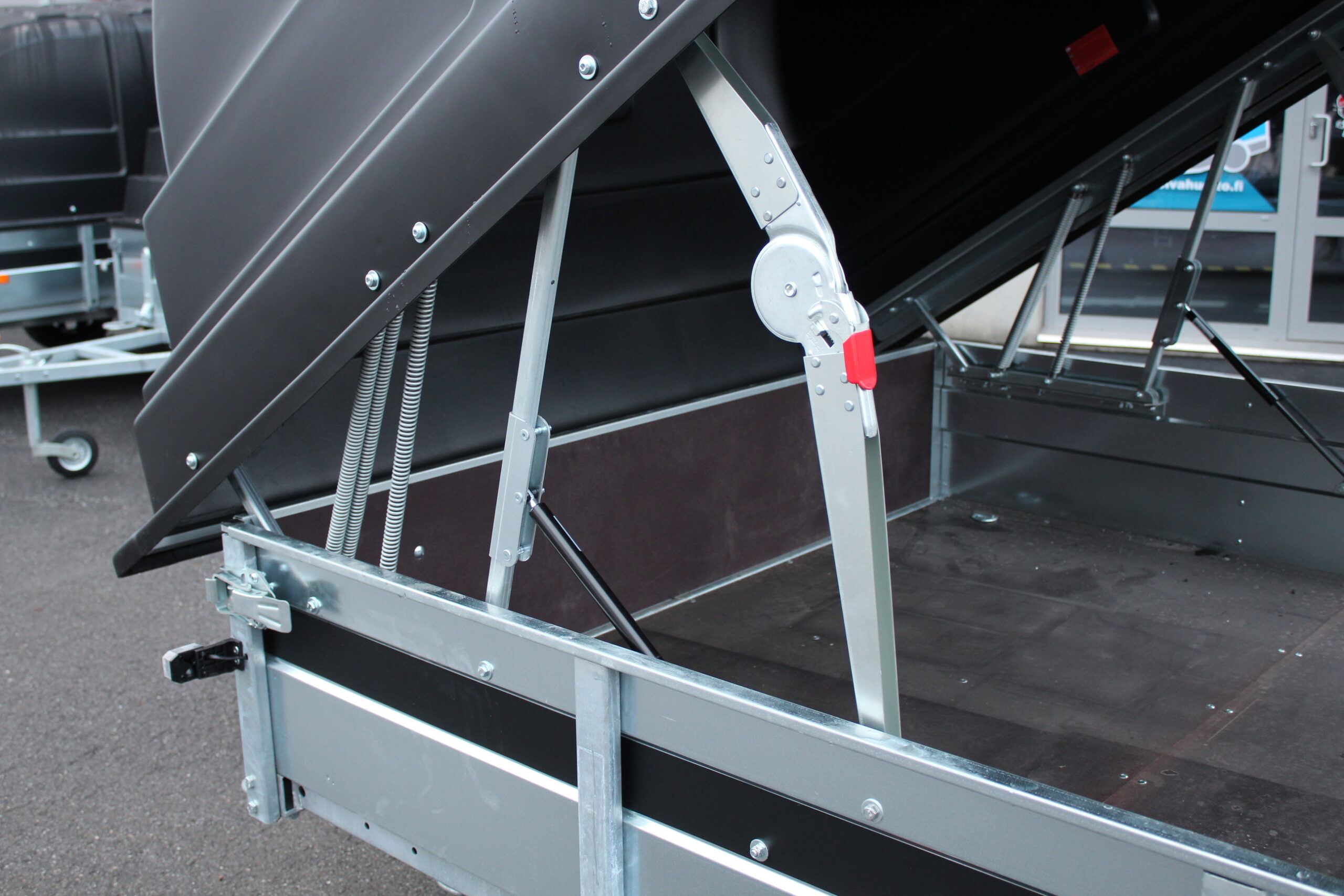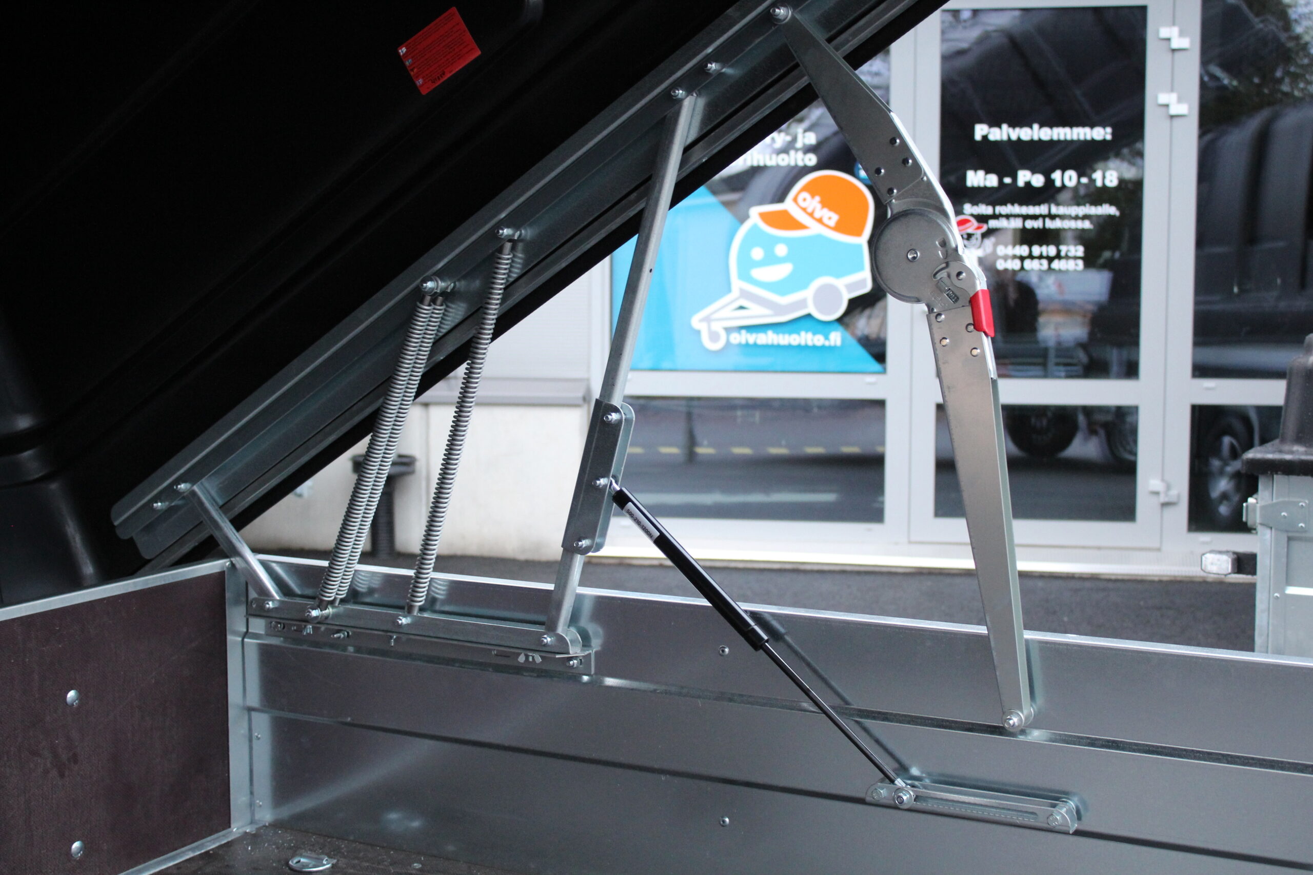 • Kuomu sisältää vahvistetun saranasarjan: 2x tuulihaat, kaasujousitoimiset (vahvemmat) saranat
