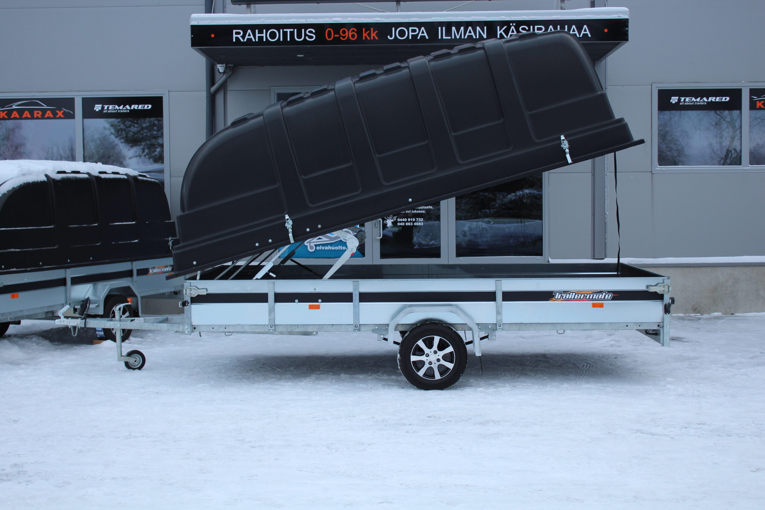 Meiltä uudet Temared tuotteet, Trailermate kuomukärryt ja venetrailerit sekä uutuutena West Trailer saunat, lavetit ja autotrailerit.