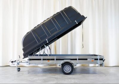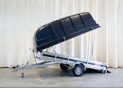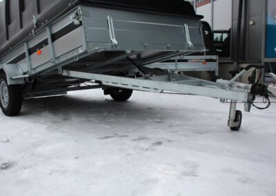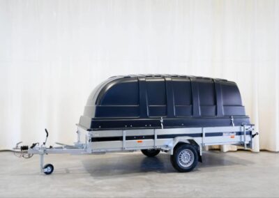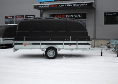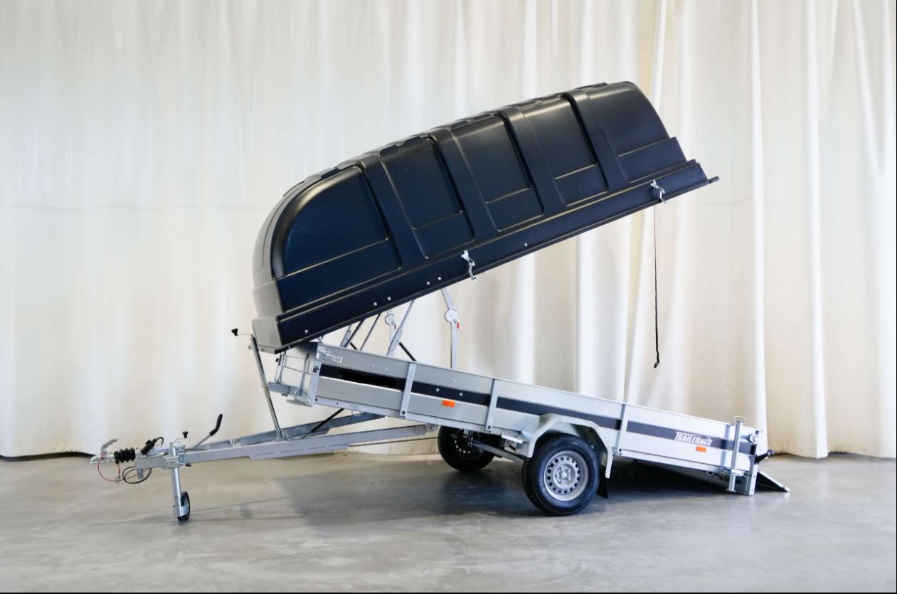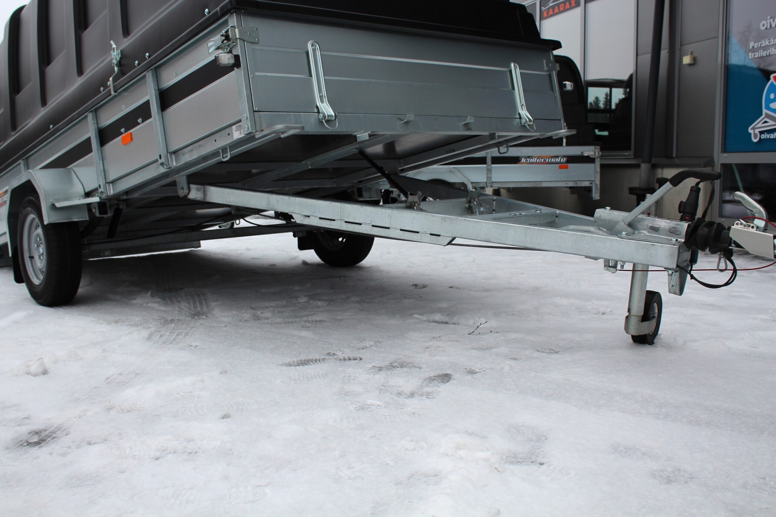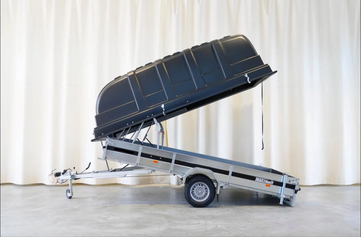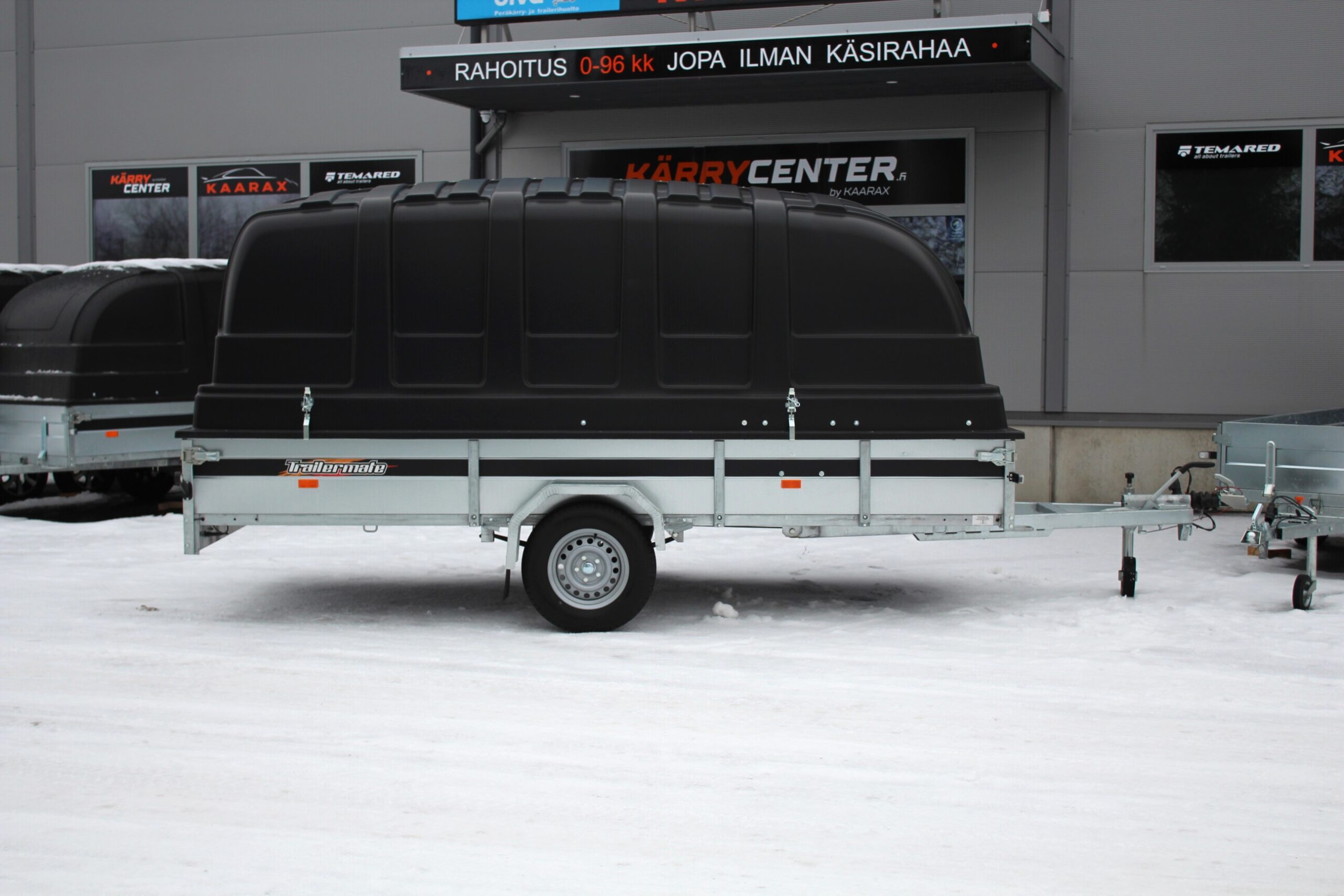 Tarjoustuote sisältää kippiruuvin. Järeämpää kuomullista peräkärryä harkitsevan kannattaa kiinnittää huomio tähän jarrulliseen Trailermateen, joka simppelistä ensivaikutelmasta huolimatta on täynnä kilpailijoista edukseen erottuvia ominaisuuksia. Eikä tämä ole myyjän paskapuhetta. Lehtijouset ja iskunvaimentimet varmistavat erinomaisen kantavuuden ja ajomukavuuden. Etu- että takalaidat ovat vahvistettu vesivanerilla. Pohjassa on 8 kpl kuormankiinnityssilmukkaa ja ulkopuolella 6 kpl hitsattua silmukkaa. Monipuolisen kärryn takalaita toimii lastaus apuna. Valitse väriksesi Jaxal-kuomuista musta tai harmaa. Kuomu sisältää vahvistetun saranasarjan: 2x tuulihaat, kaasujousitoimiset (vahvemmat) saranat. Kuvien tukijalat ja ovat saatavilla lisävarusteena.