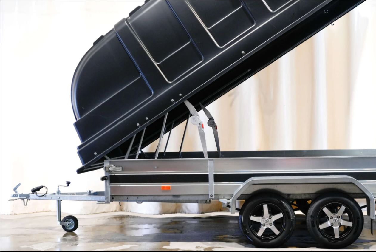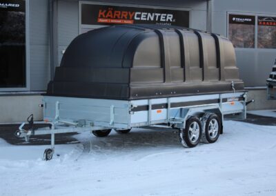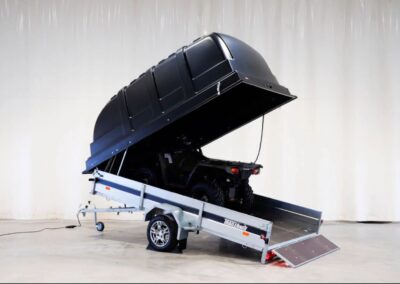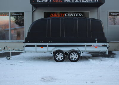- 125cm korkean Jaxal kuomun alle mahtuuu mönkijät ja moottorikelkat jos peräkärryn laidan korkeus on riittävä (30-38cm)