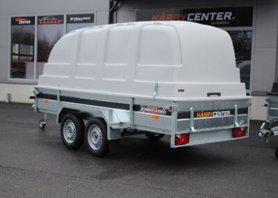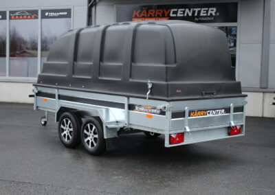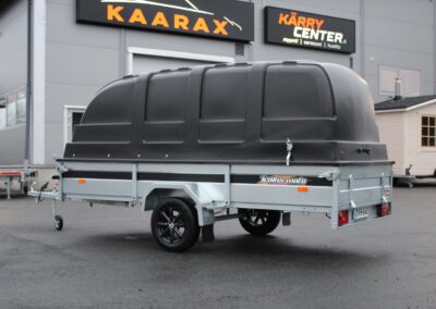 • 100-125cm korkean Jaxal kuomun alle mahtuvat niin mönkijät kuin moottorikelkat jos peräkärryn laidan korkeus on riittävä (30-35cm)